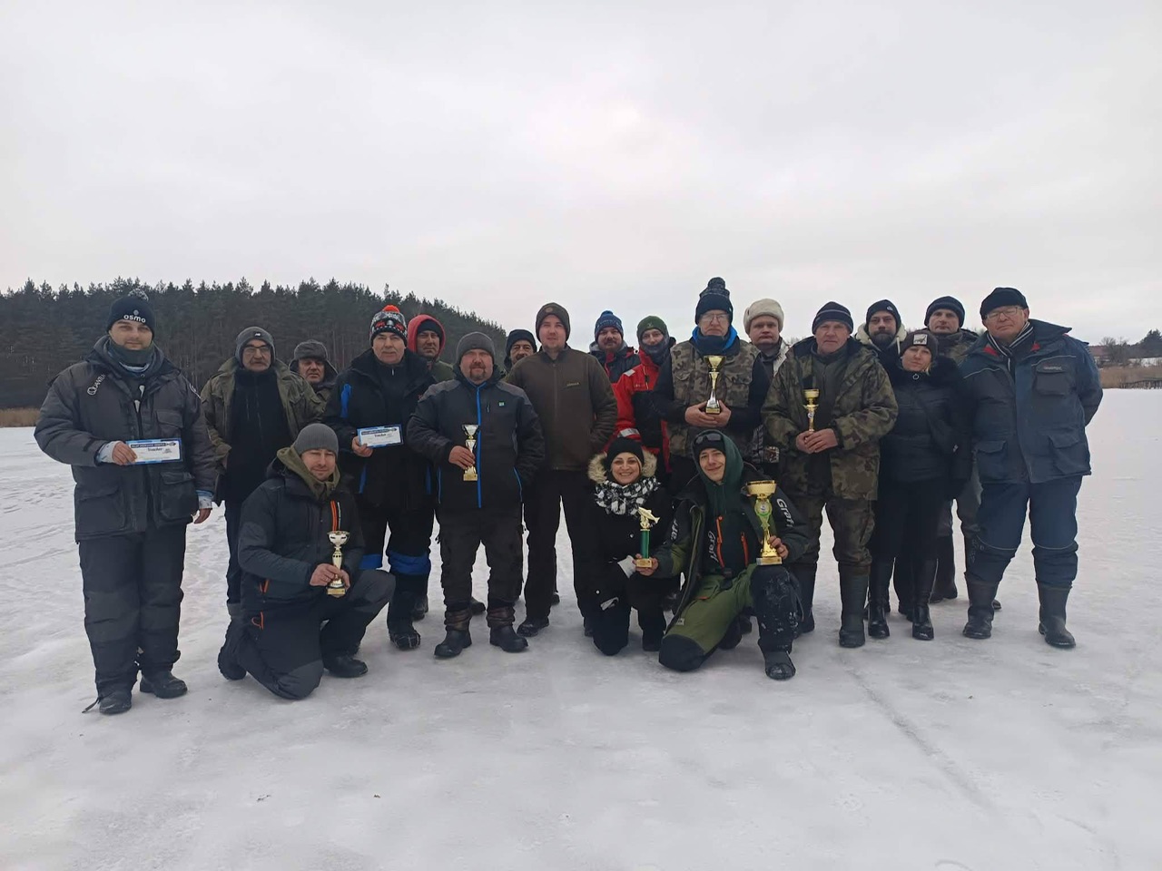 Mroźna aura nie odstraszyła miłośników zimowego wędkarstwa – punktualnie o godzinie 9:00 na tafli lodu zameldowało się 18 zawodników gotowych do rywalizacji.
