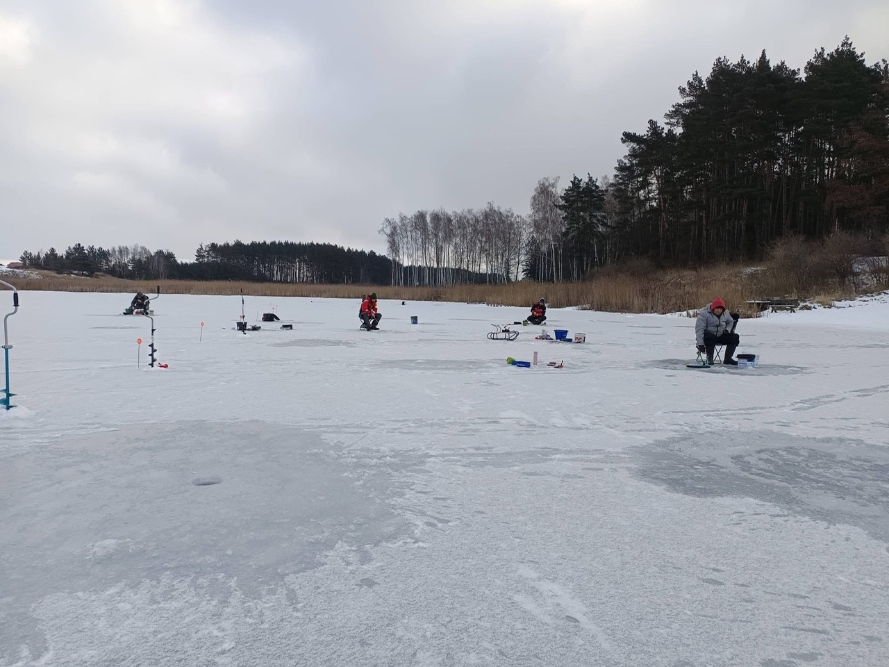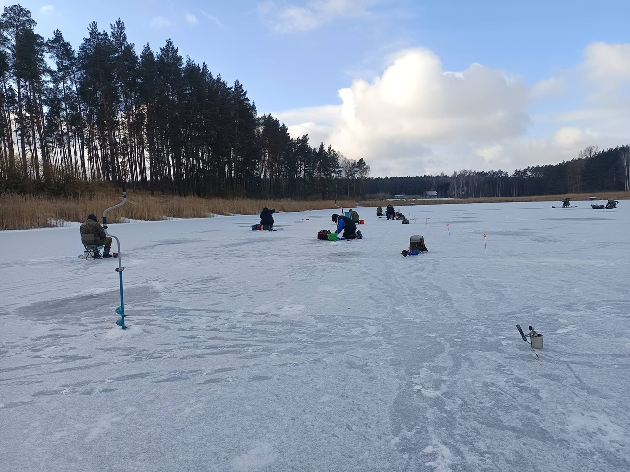 Po wylosowaniu stanowisk uczestnicy przystąpili do wiercenia przerębli i przygotowywania sprzętu. Choć ryby tego dnia nie rozpieszczały, a temperatura skutecznie dawała się we znaki, atmosfera była wyjątkowo gorąca. Jak zgodnie podkreślali zawodnicy – najważniejsza jest wspólna pasja, integracja i dobra zabawa, a tej zdecydowanie nie brakowało.