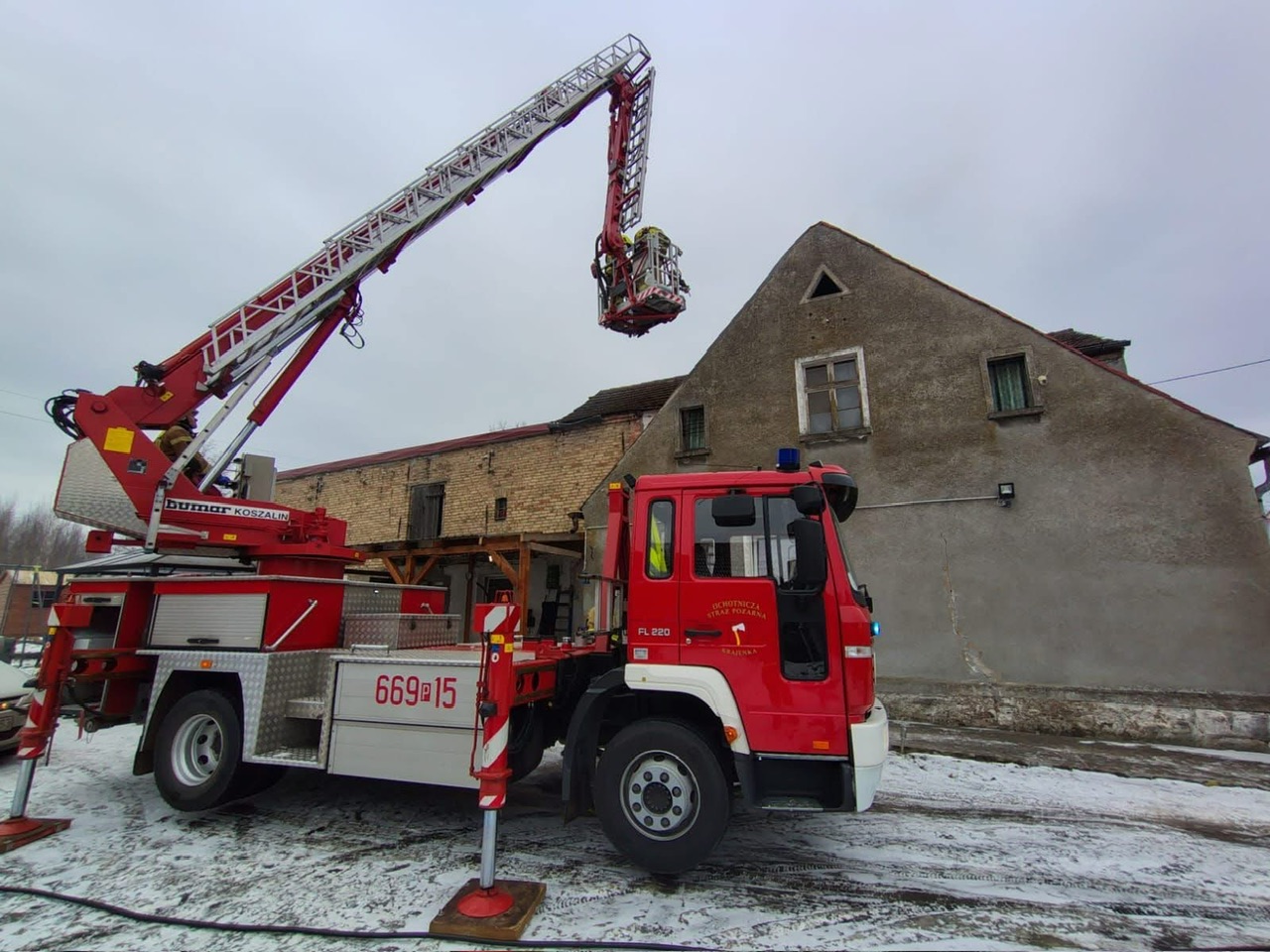 Po przybyciu na miejsce strażacy przeprowadzili rozpoznanie i potwierdzili, że w budynku nie ma osób poszkodowanych. Teren działań został zabezpieczony, a po dojeździe kolejnych jednostek dowodzenie przejął oficer z jednostki wchodzącej w skład KSRG.
