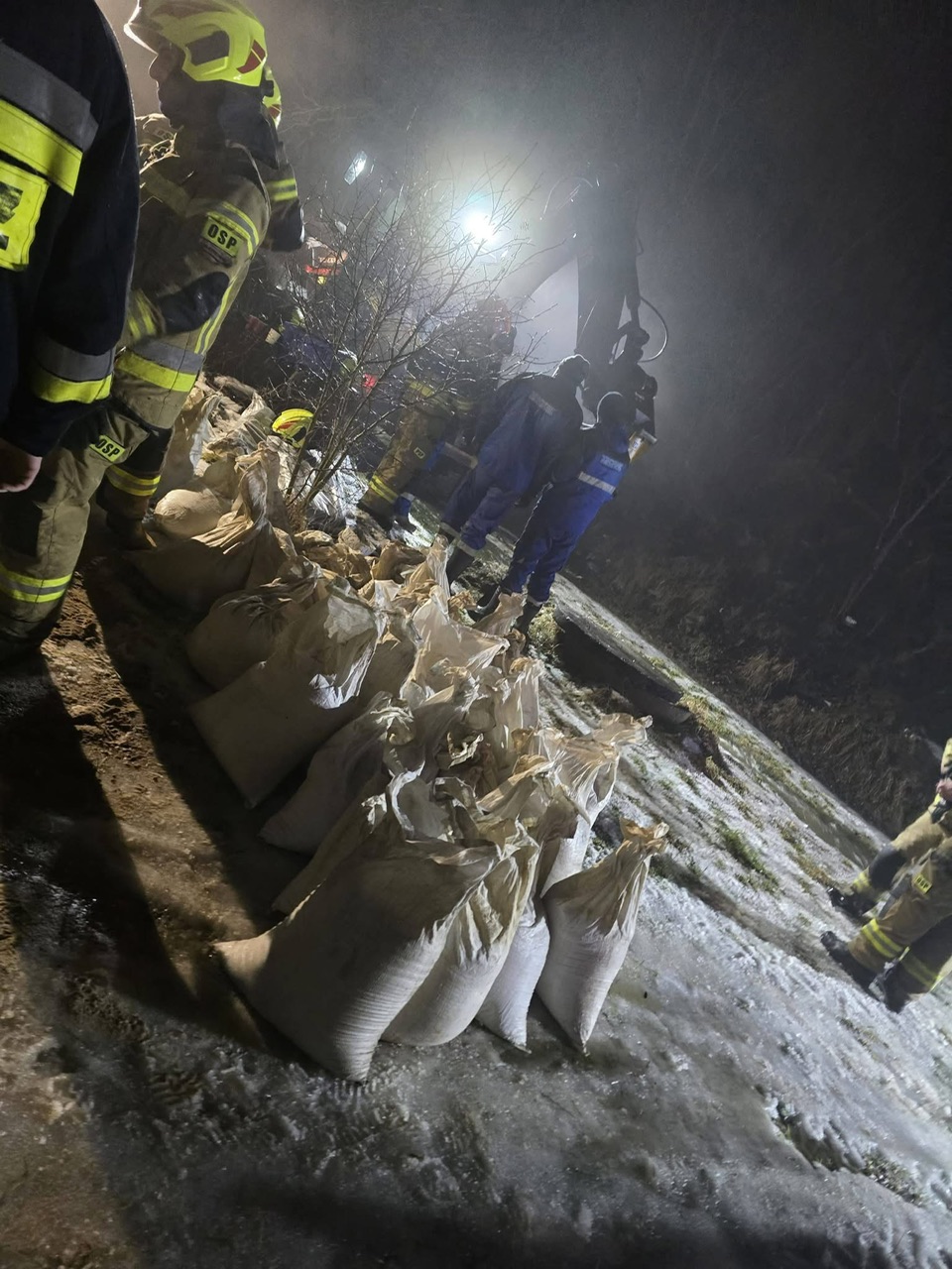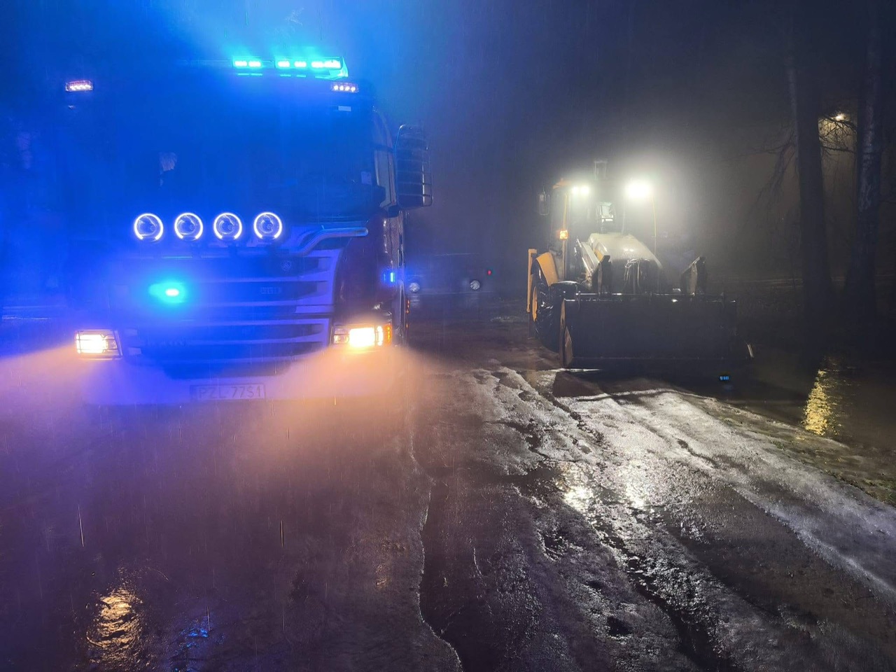 Po zakończeniu pierwszego etapu działań i powrocie do jednostek ratownicy zostali ponownie zadysponowani w to samo miejsce. Okazało się bowiem, że sytuacja wymaga dalszych prac związanych z usuwaniem zalegającej wody i przywróceniem przejezdności drogi.
