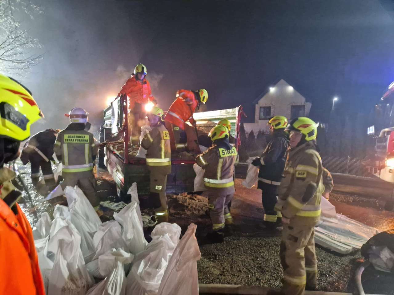 Do walki z żywiołem skierowano 77 zastępów straży pożarnej, w których działaniach uczestniczyło ponad 400 strażaków z jednostek PSP i OSP. Ich praca polegała przede wszystkim na zabezpieczaniu budynków, umacnianiu wałów ochronnych z worków z piaskiem oraz wypompowywaniu wody z zalanych obiektów i posesji.