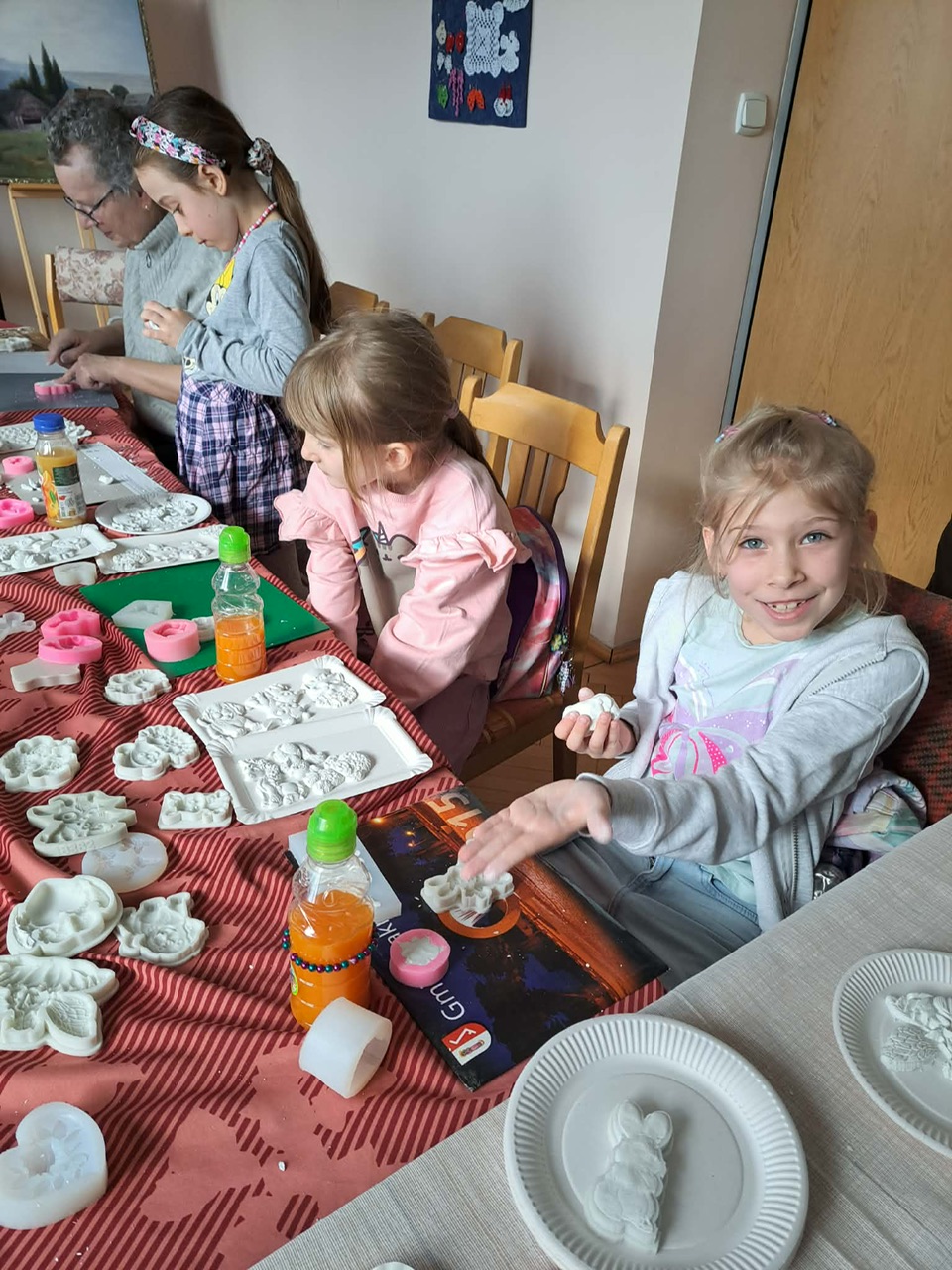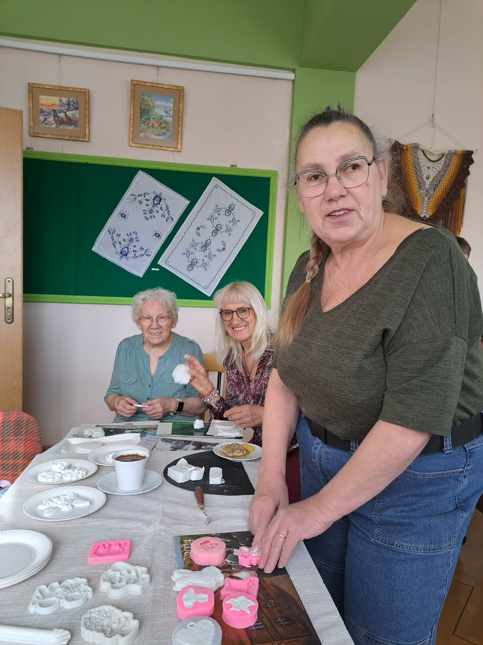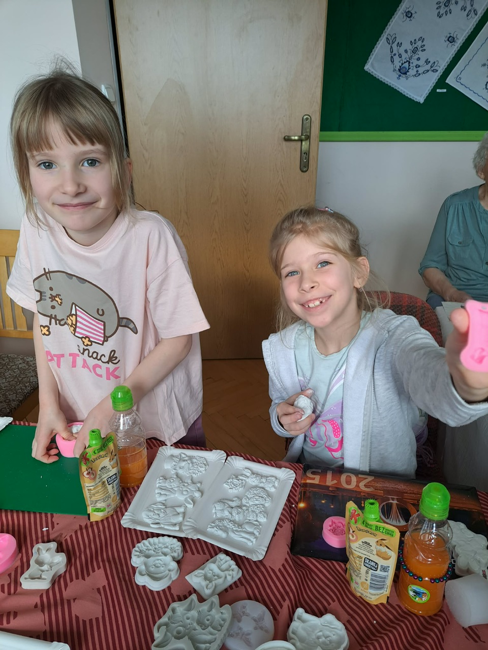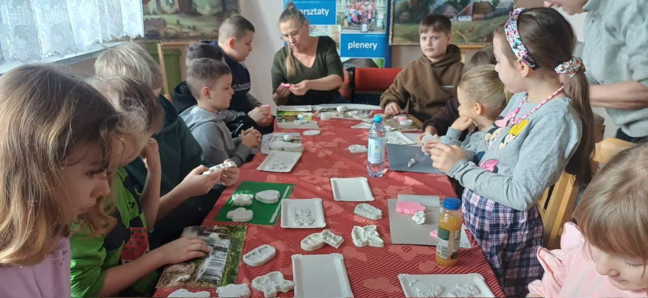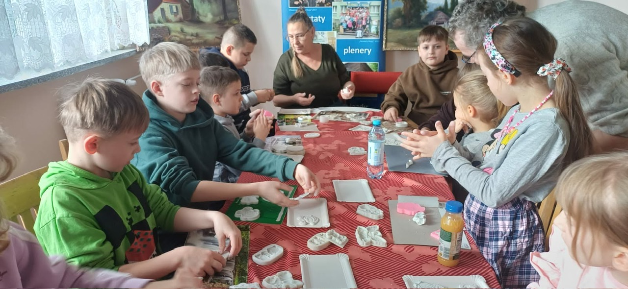 Nie mniej emocji towarzyszyło warsztatom z masy plastycznej. Korzystając z silikonowych foremek, uczestnicy tworzyli wyjątkowe ozdoby o tematyce wielkanocnej i wiosennej. Było mnóstwo uśmiechu, świetnej zabawy i satysfakcji z własnoręcznie wykonanych prac. Zajęcia poprowadziła Renata Białowąs wraz ze swoją koleżanką Barbarą, dbając o ciepłą i twórczą atmosferę.