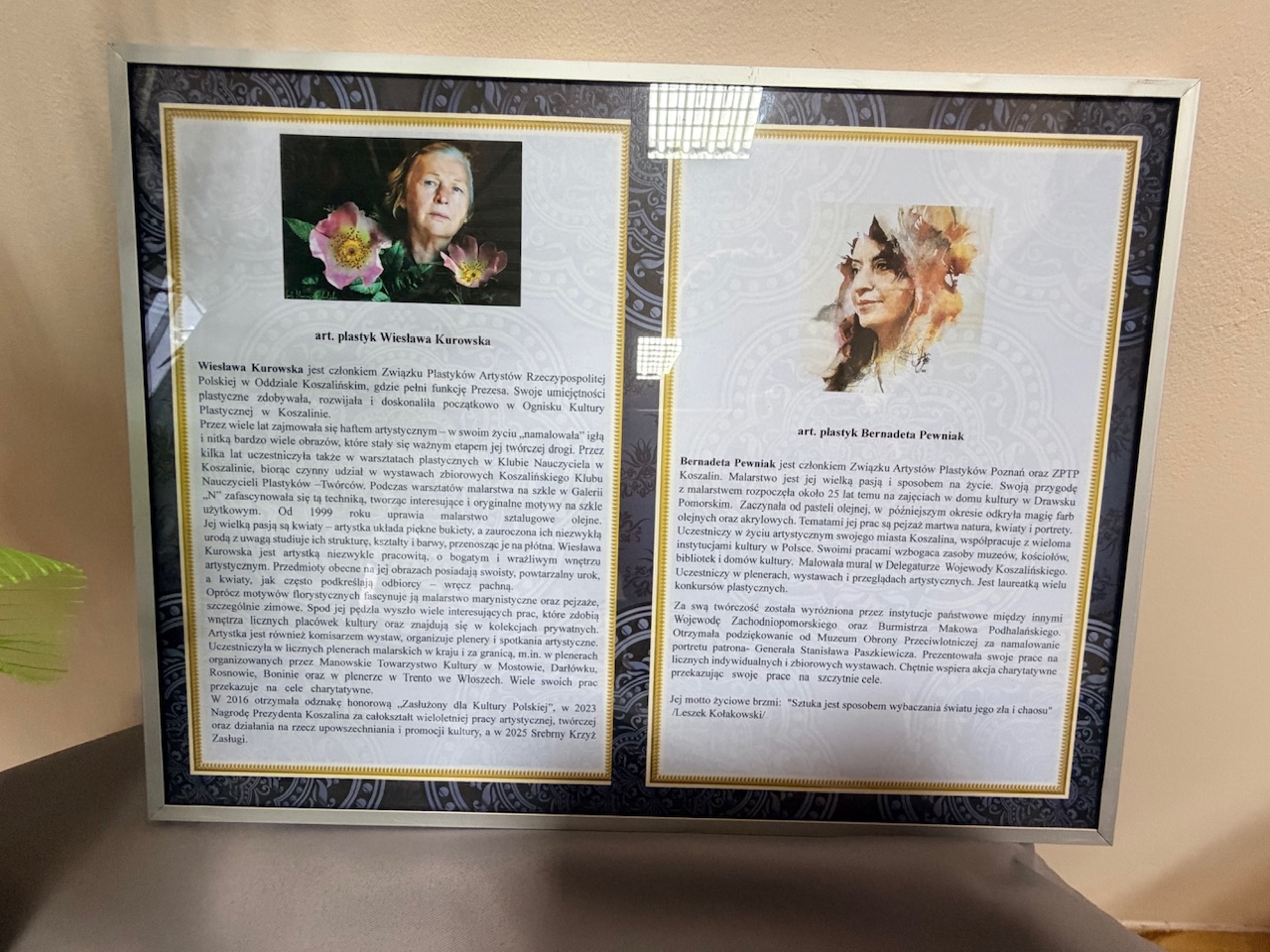 Swoje prace zaprezentowały artystki z Koszalina – Wiesława Kurowska oraz Bernadeta Pewniak. Choć motywem przewodnim ekspozycji była zima, zaprezentowane obrazy zachwycały ciepłem, światłem oraz bogactwem kolorów. Było to malarstwo na wysokim poziomie artystycznym – pełne nastroju, subtelności i piękna, które otulało i poruszało odbiorców.