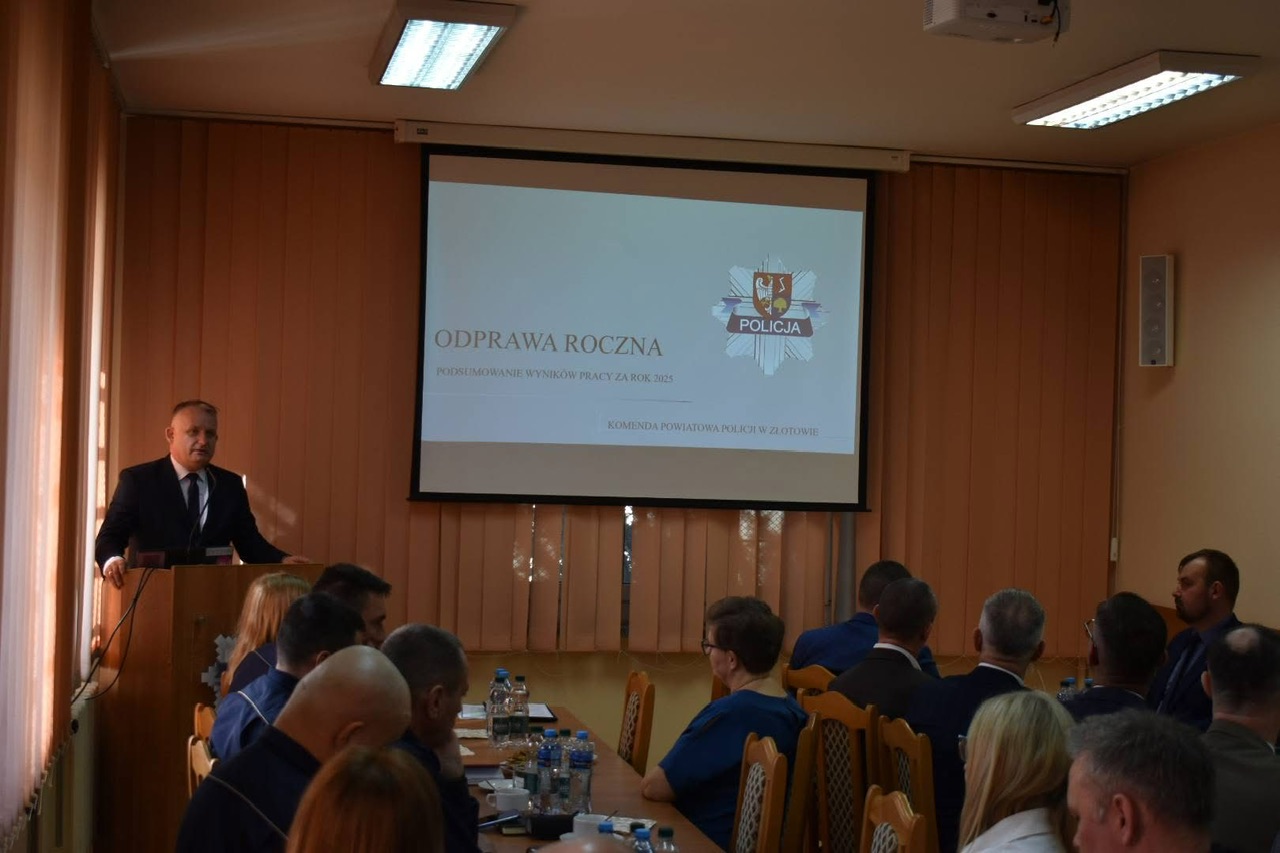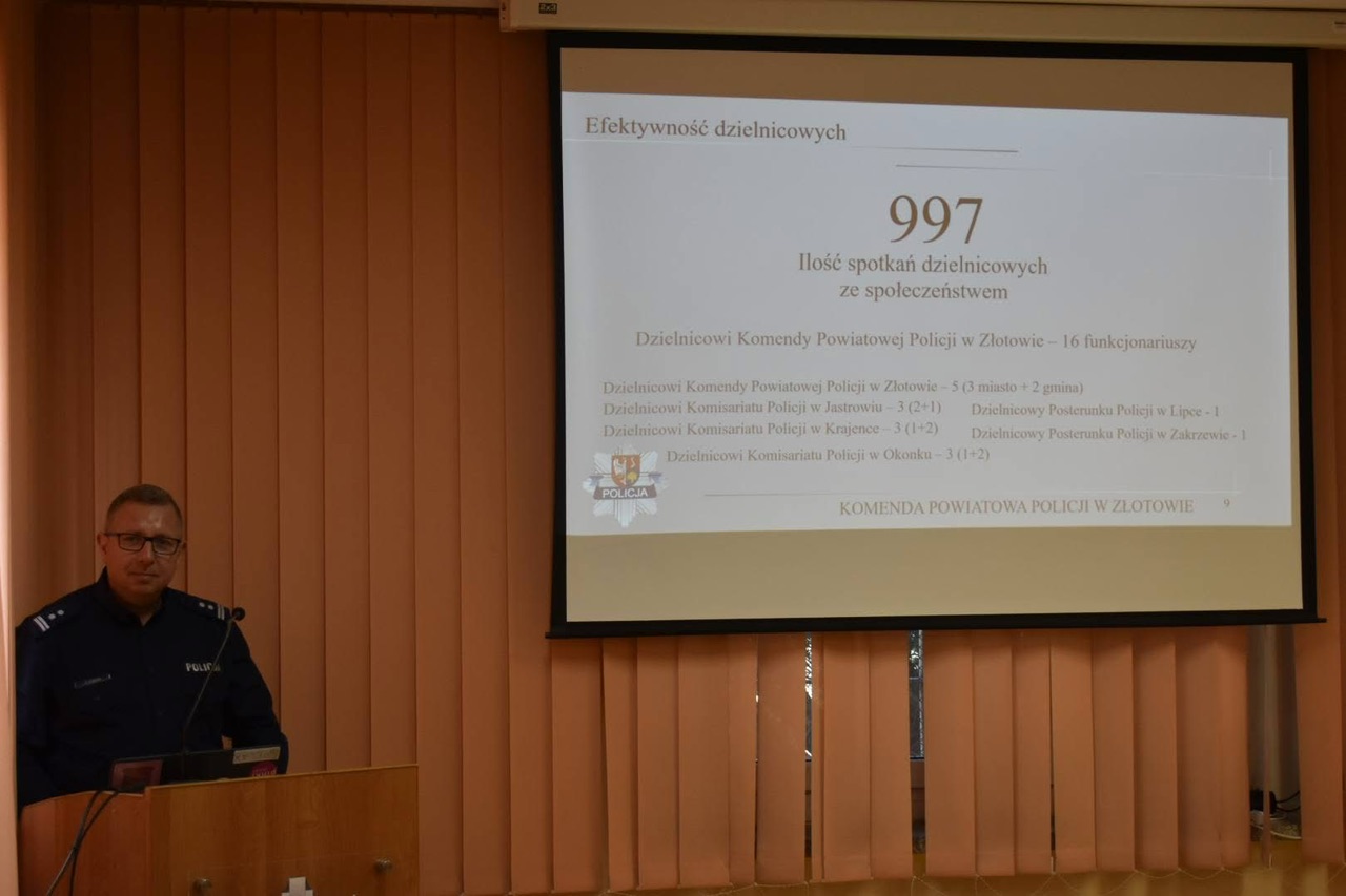 W obecności samorządowców Komendant Powiatowy Policji w Złotowie wraz z I Zastępcą szczegółowo omówili rezultaty pracy policjantów w minionym roku. Przedstawiono realizację najważniejszych programów prewencyjnych, działania profilaktyczne oraz inicjatywy podejmowane na rzecz poprawy bezpieczeństwa mieszkańców powiatu.