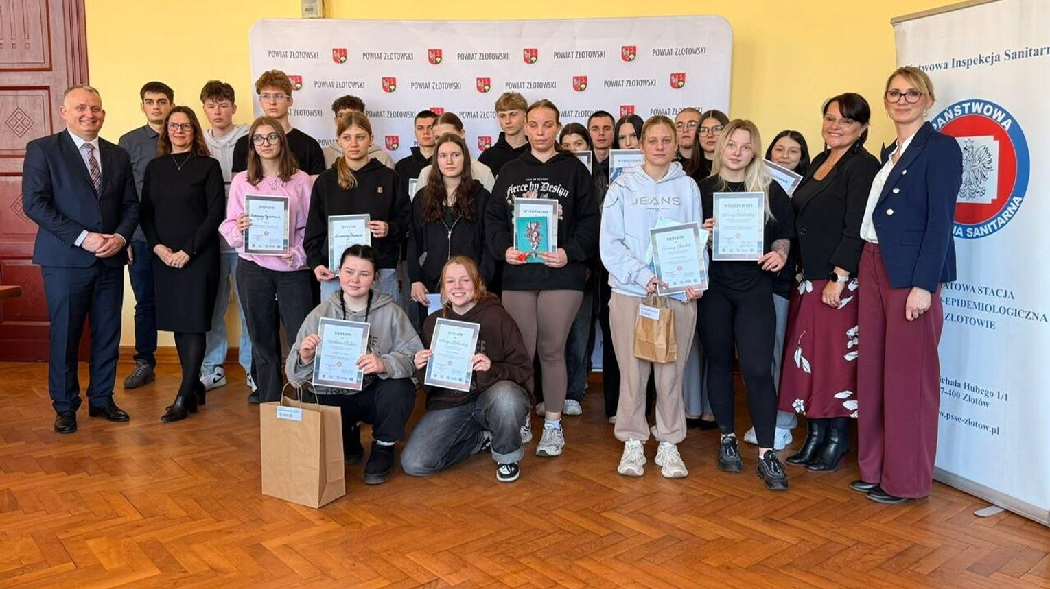 W auli Starostwa Powiatowego w Złotowie odbyło się dziś uroczyste podsumowanie walentynkowego konkursu literackiego pod hasłem „Oblicza miłości – HIV i inne choroby przenoszone drogą płciową”. Wydarzenie zorganizowano w ramach ogólnopolskiej akcji „Bezpieczne Walentynki”, której celem jest zwiększanie świadomości młodych ludzi na temat zdrowia i odpowiedzialnych relacji.