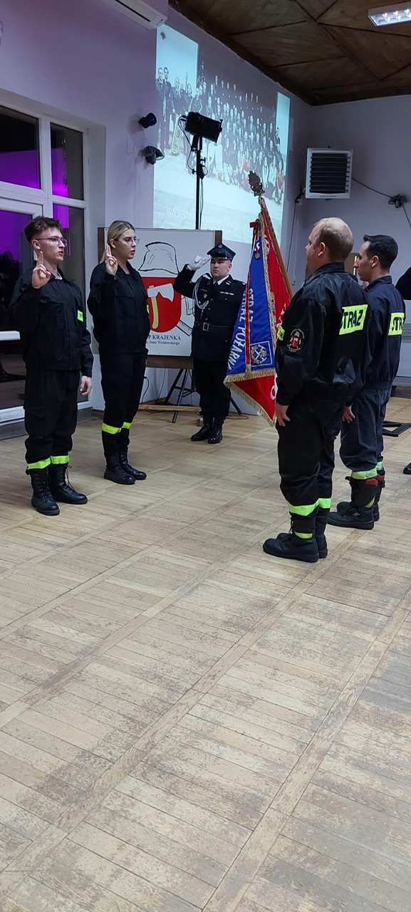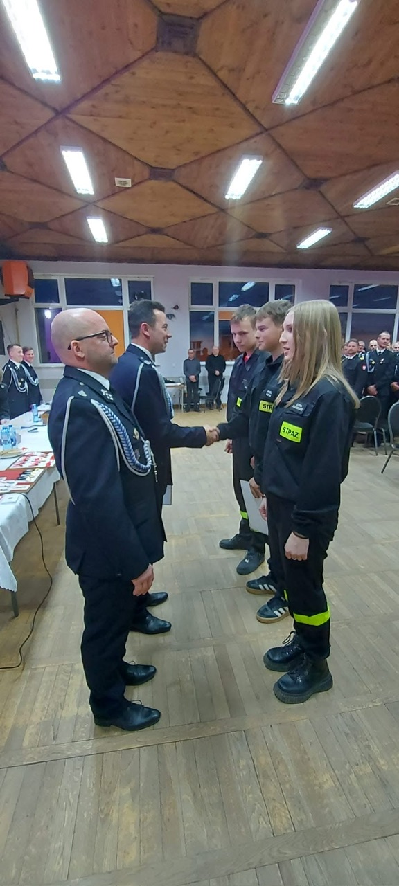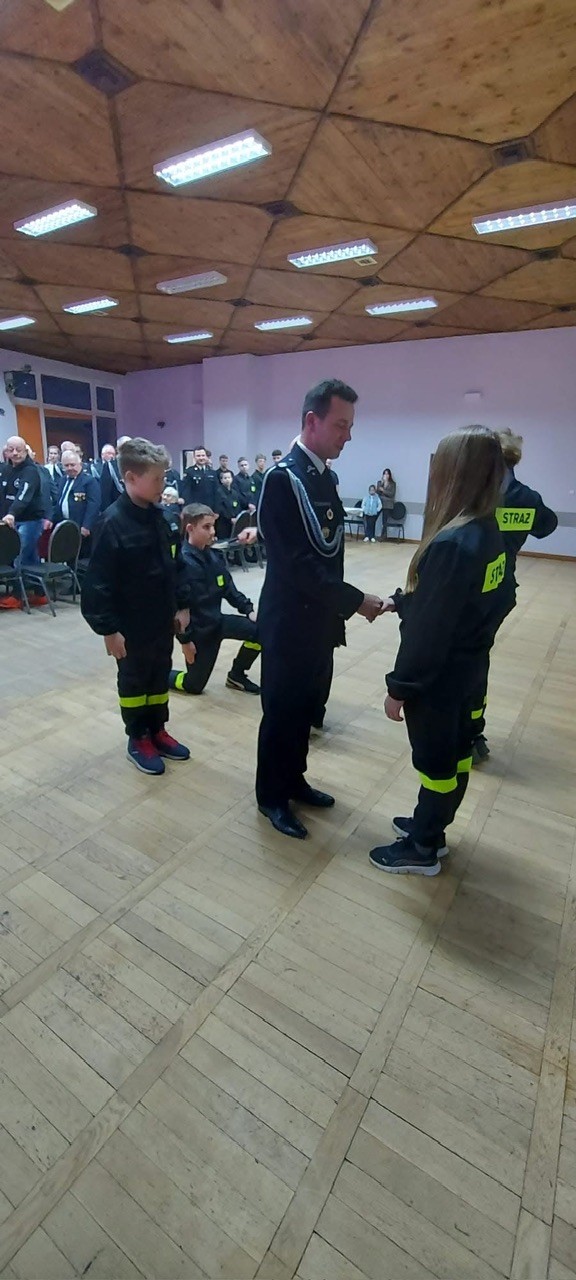 Szczególnie podniosłym momentem zebrania było ślubowanie nowych członków Młodzieżowej Drużyny Pożarniczej oraz Jednostki Operacyjno-Technicznej. Do MDP dołączyli: Izabella Gapa, Florian Korczak, Kacper Kowalski oraz Aleksander Ziturus. Szeregi JOT zasiliły natomiast osoby: Dominik Kaczmarek, Piotr Kurcin, Oliwia Sudoł oraz Adam Szałkiewicz.