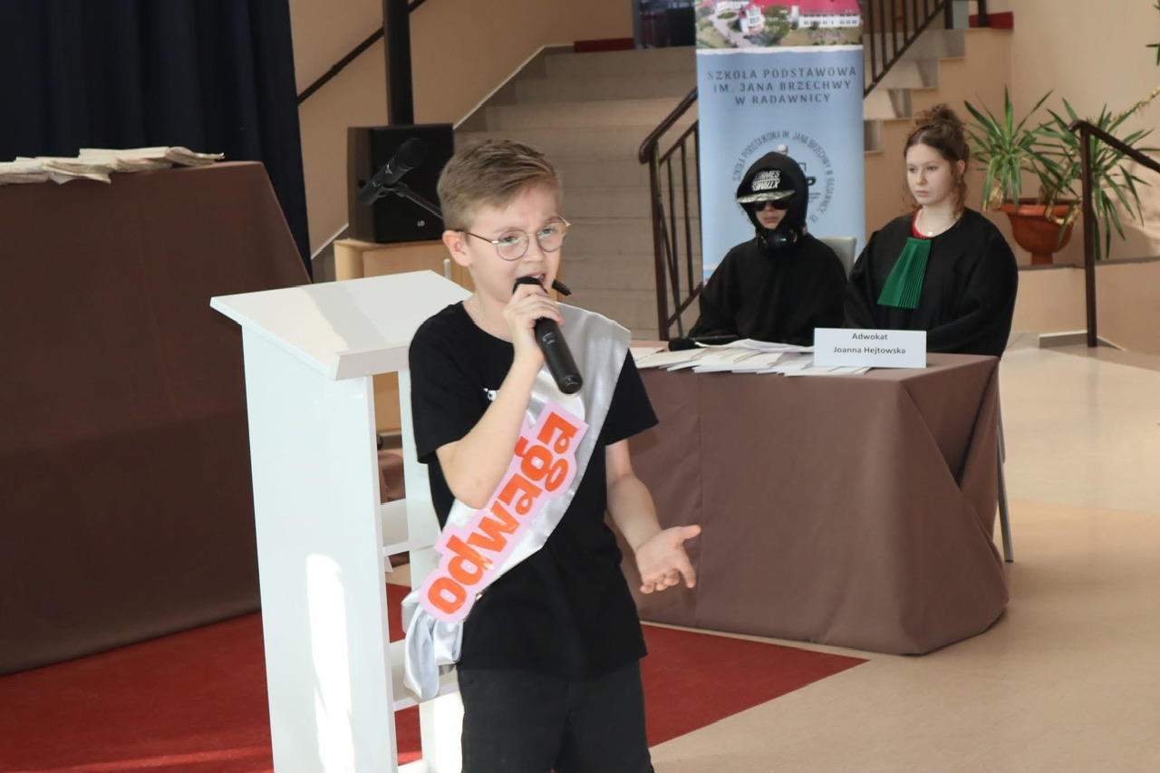 Spektakl przybrał formę rozprawy sądowej. Uczniowie wcielili się w role sędziego, prokuratora, adwokata, świadków, a także samego Hejtu – głównego „oskarżonego”. Na sali rozbrzmiewały głosy takich wartości jak Empatia, Wrażliwość, Odwaga, Rozsądek czy Dobre Wychowanie, które symbolicznie stanęły naprzeciw niszczącej sile słów.