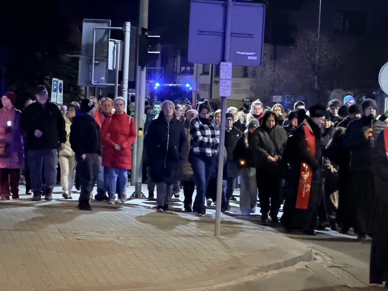 Nabożeństwo rozpoczęło się punktualnie o godzinie 19:00. Wierni, niosąc krzyż, wyruszyli ulicami miasta, zatrzymując się przy kolejnych stacjach Męki Pańskiej. Każdej z nich towarzyszyły rozważania, które skłaniały do refleksji nad cierpieniem Chrystusa, ale także nad własnym życiem, codziennymi wyborami i relacjami z drugim człowiekiem.