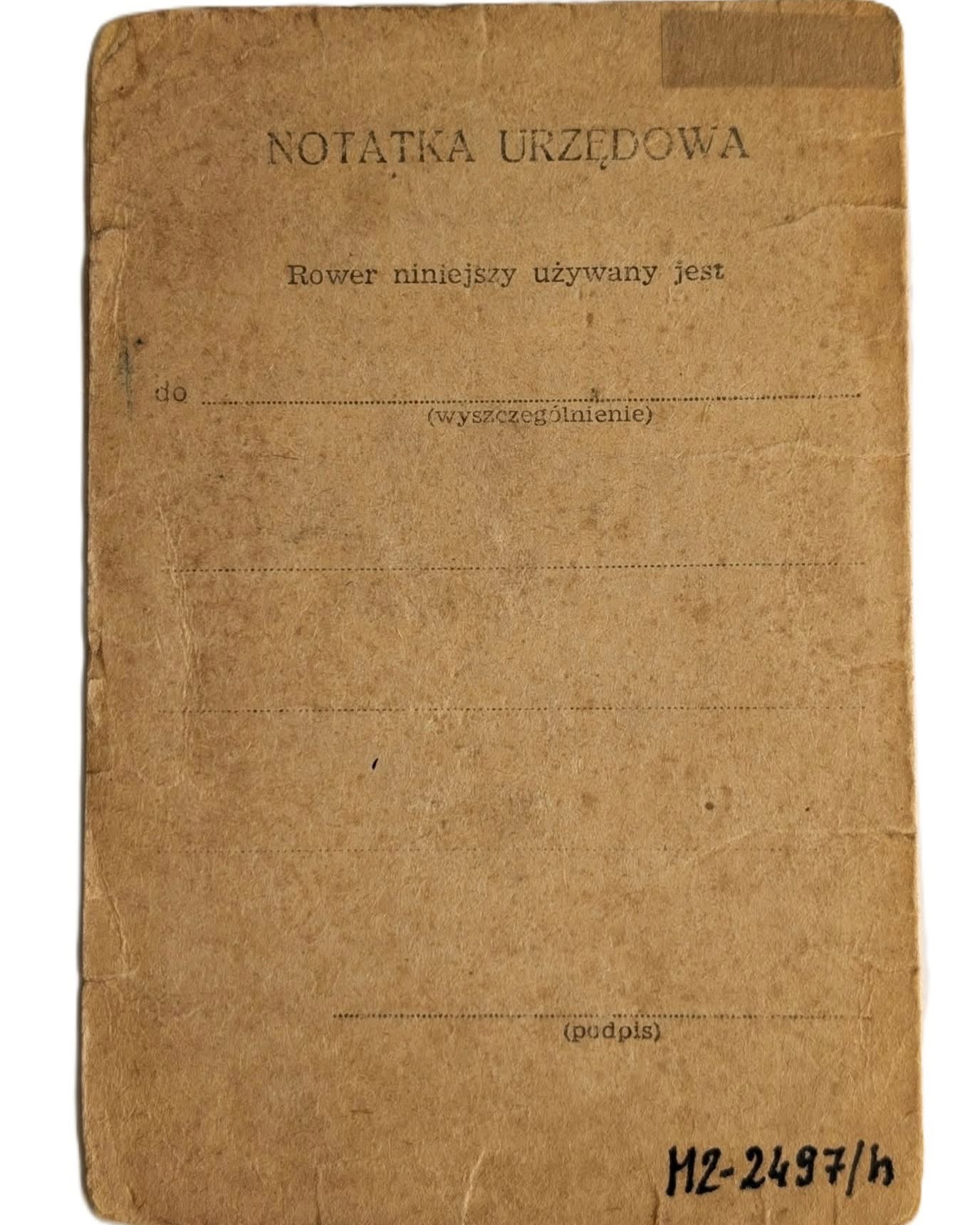Dokument dotyczy roweru marki Bauer o numerze ramy 0833918 i – co dziś może wydawać się wręcz nieprawdopodobne – posiadał określony termin ważności. Uprawniał właściciela do poruszania się po drogach publicznych jedynie do 31 grudnia 1950 roku.