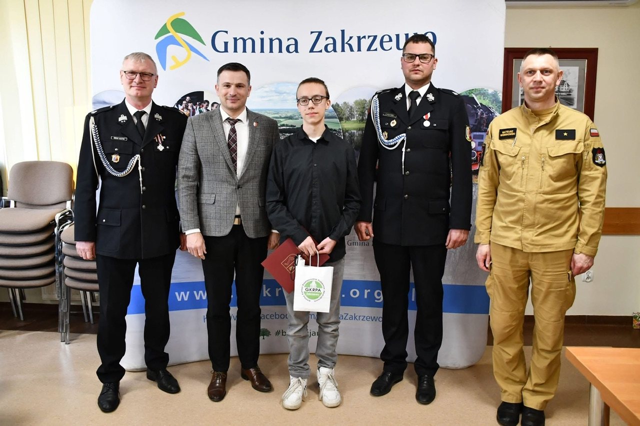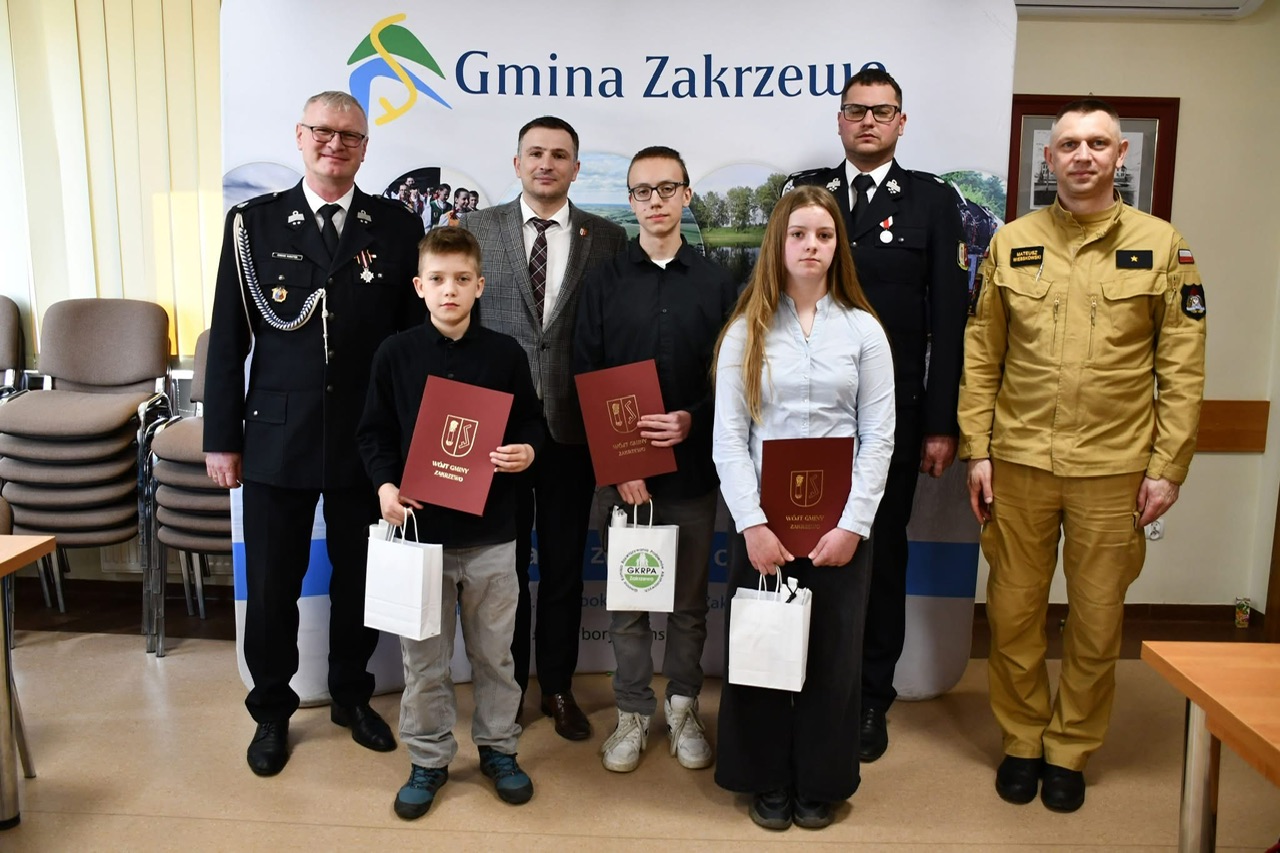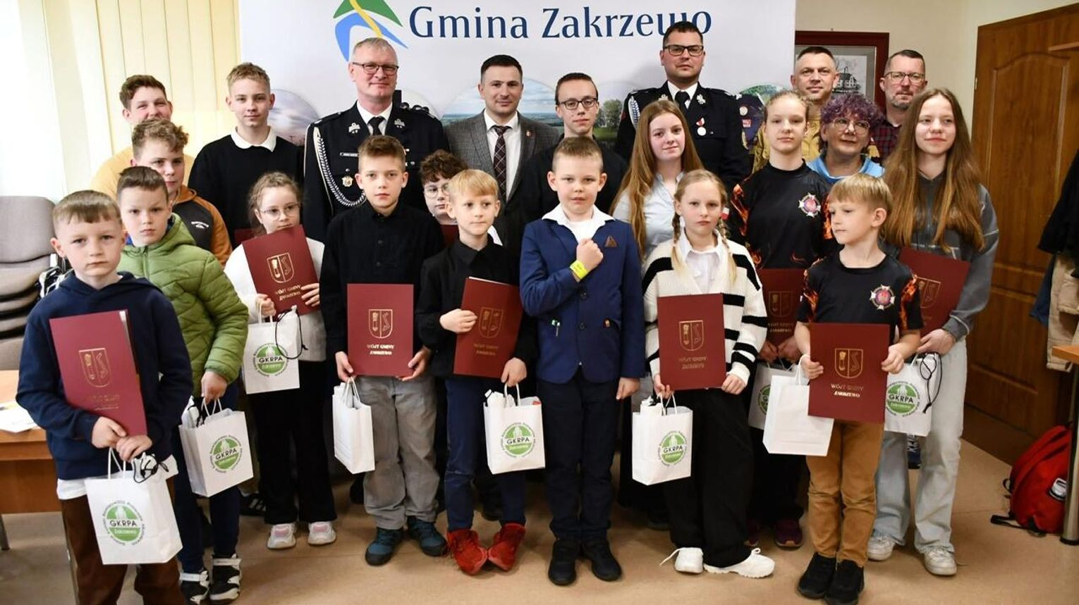 Nagrody oraz dyplomy wręczył wójt gminy Marek Buława wraz z członkami komisji, podkreślając wysoki poziom przygotowania uczestników oraz znaczenie edukacji w zakresie bezpieczeństwa pożarowego.