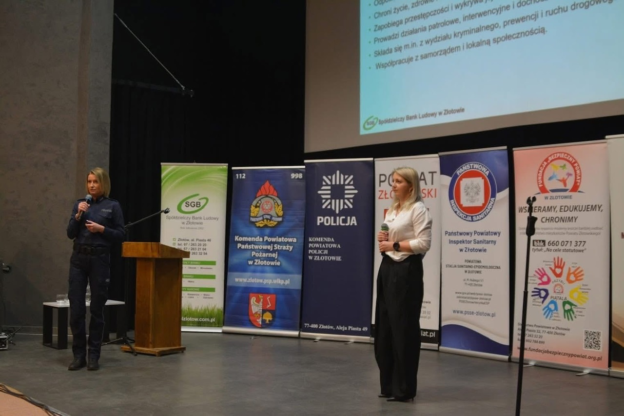 Istotnym elementem wydarzenia były również wystąpienia przedstawicieli służb i instytucji. O bezpieczeństwie przeciwpożarowym oraz zagrożeniach dnia codziennego mówili reprezentanci Komendy Powiatowej Państwowej Straży Pożarnej w Złotowie, Komendy Powiatowej Policji w Złotowie oraz Spółdzielczego Banku Ludowego w Złotowie, zwracając uwagę m.in. na metody działania oszustów i sposoby unikania zagrożeń.