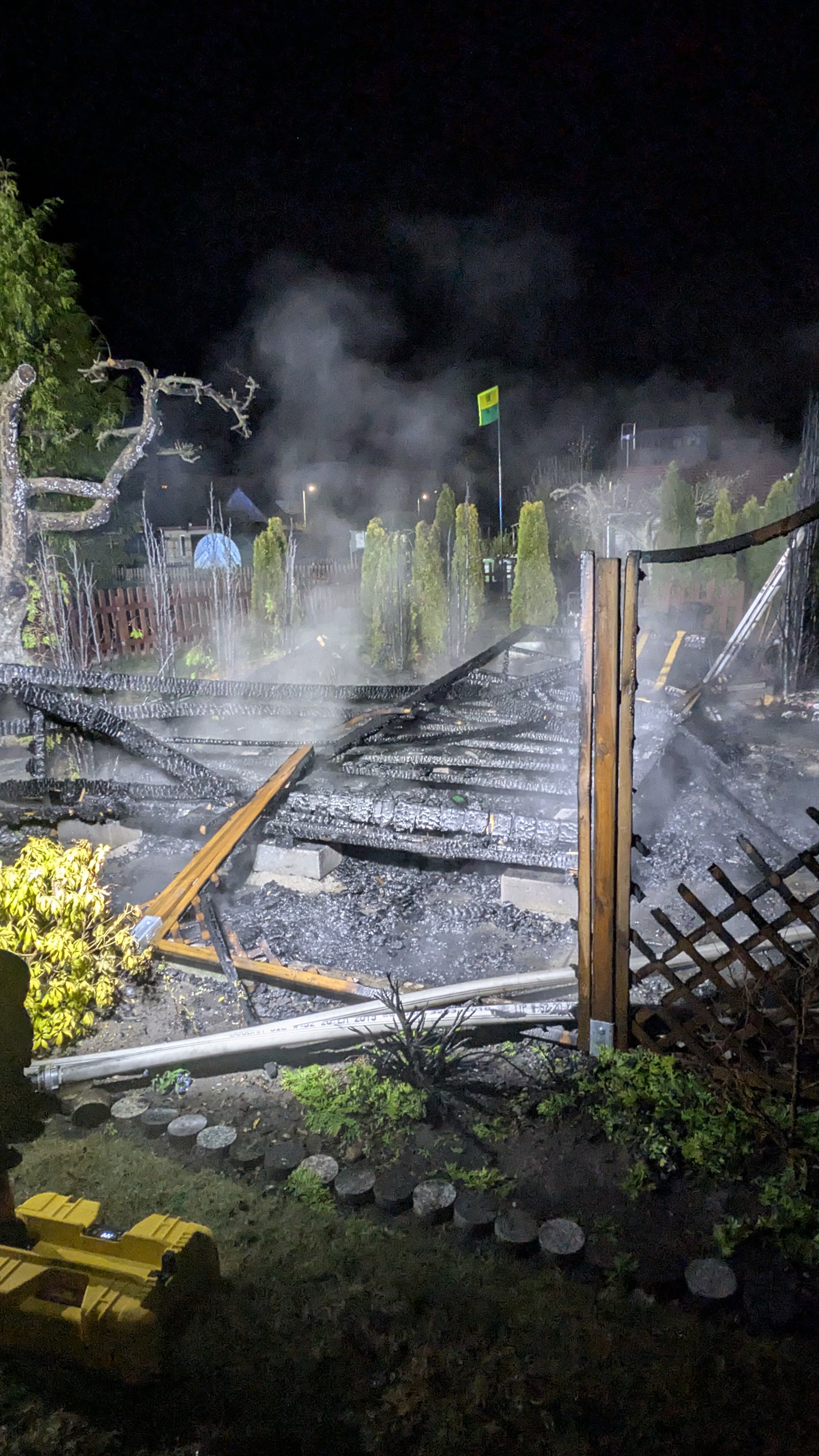 Ogień objął altanę działkową, która została całkowicie zniszczona.