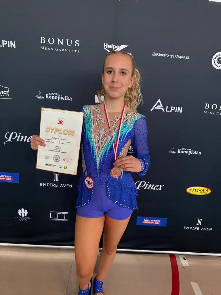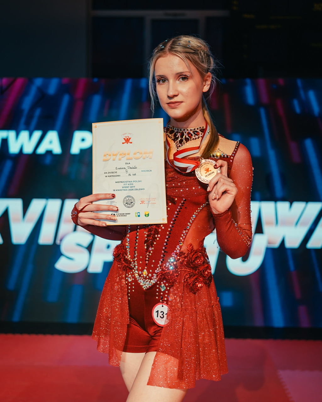 Równolegle reprezentacja klubu rywalizowała w Mistrzostwach Polski Dzieci i Młodzieży w Fitness w Kielcach, organizowanych przez Polski Związek Kulturystyki, Fitness i Trójboju Siłowego. Stawką były nie tylko medale, ale także kwalifikacje do mistrzostw świata. I tutaj zawodniczki ze Złotowa pokazały klasę – Kinga Wiedro została wicemistrzynią Polski w fitness akrobatycznym (13 lat), a Oliwia Słowińska sięgnęła po tytuł II wicemistrzyni (12 lat). Wysokie, czwarte miejsce zajęła Wiktoria Sobiesiak.
