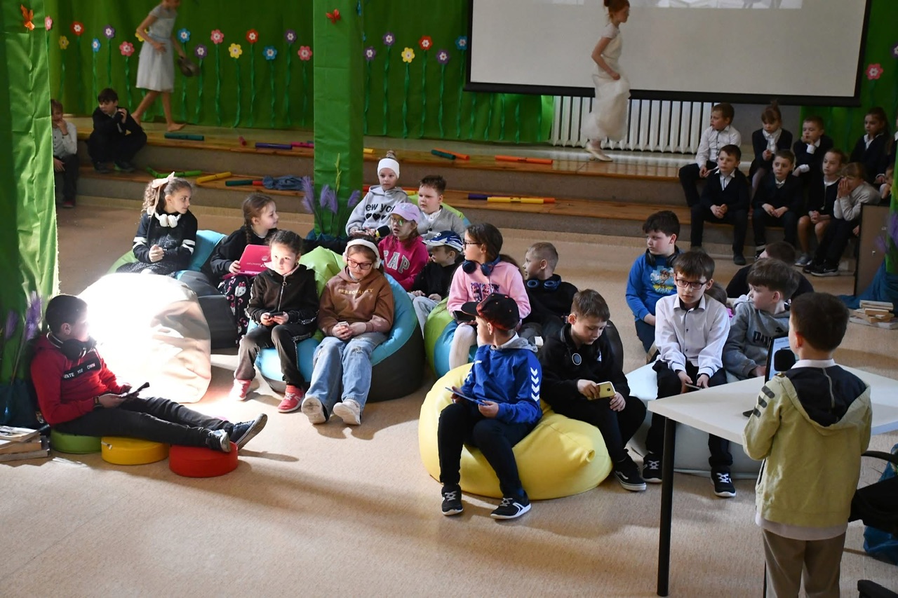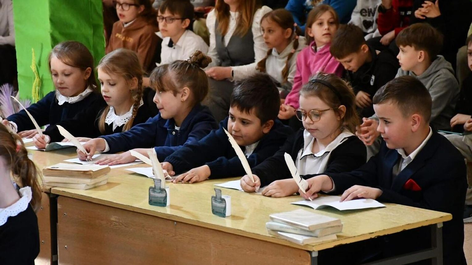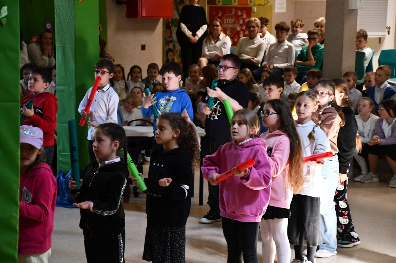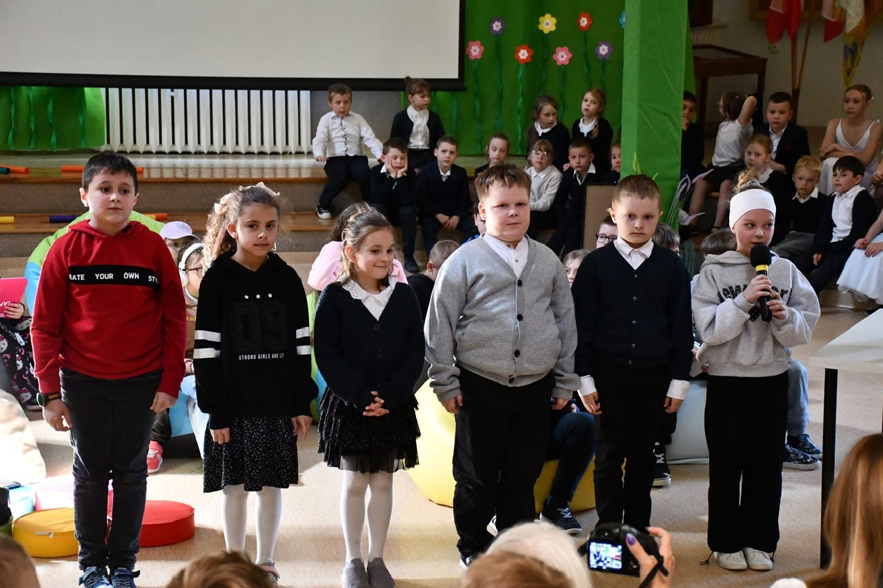 Dalsza część uroczystości przeniosła się do murów szkoły. Tam odbył się uroczysty apel, podczas którego uczniowie zaprezentowali program artystyczny inspirowany klimatem dawnej szkoły. Nie zabrakło efektownych elementów – publiczność z entuzjazmem przyjęła zarówno układ taneczny z parasolkami, jak i występ muzyczny z wykorzystaniem bum-bum rurek.