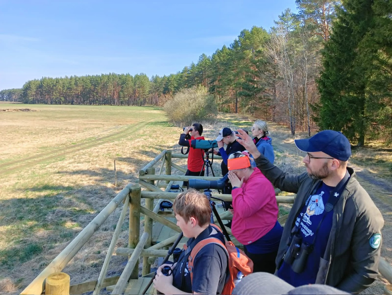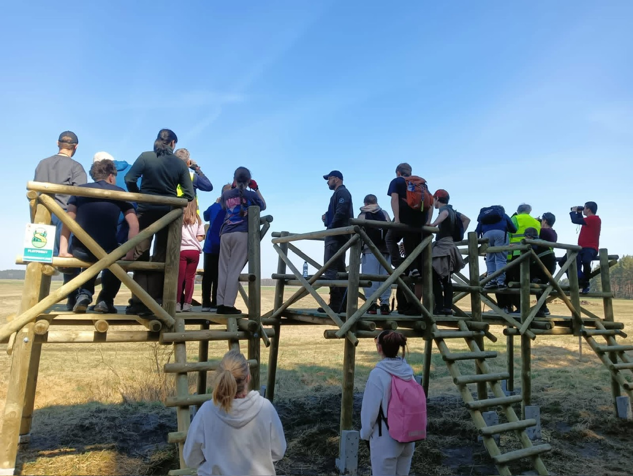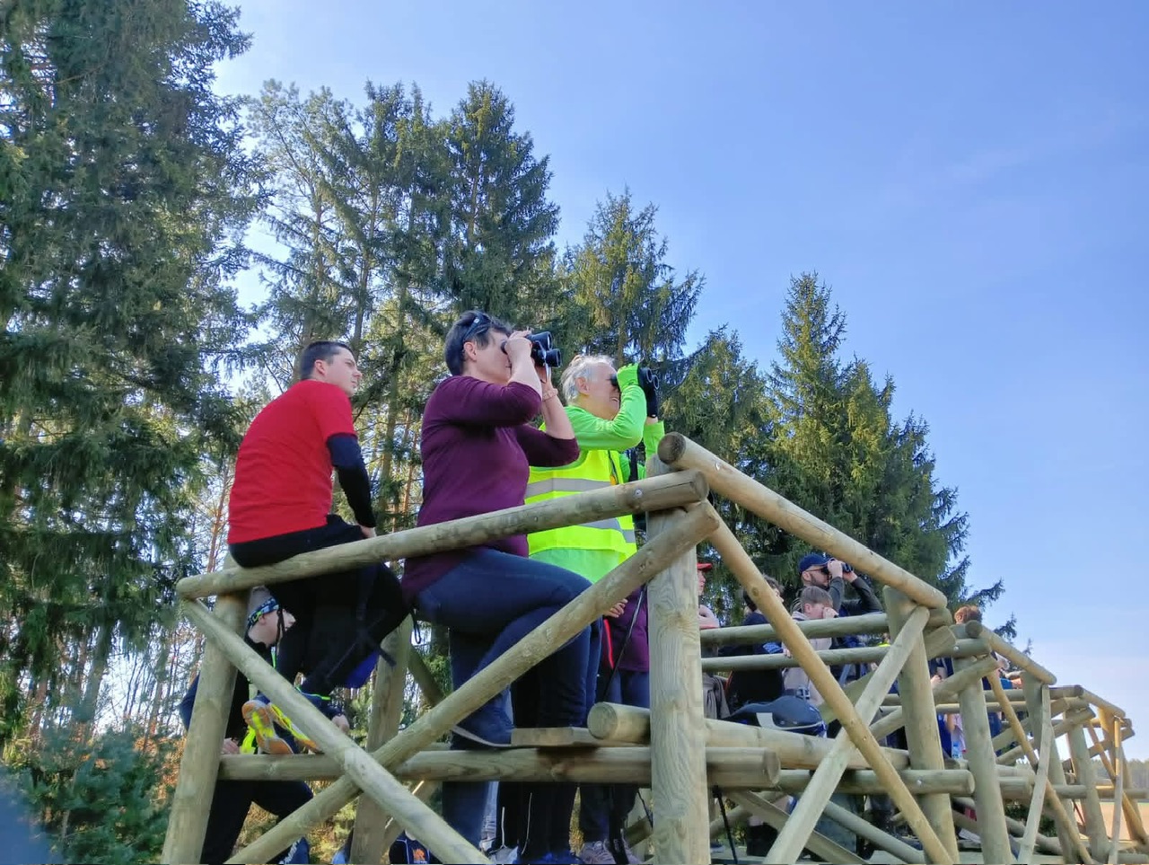 Kolejnym punktem programu była obserwacja ptaków z platform ornitologicznych. Uczestnicy mieli okazję przyjrzeć się z bliska różnorodności gatunków zamieszkujących okoliczne tereny, co stanowiło ciekawy element edukacyjny rajdu.