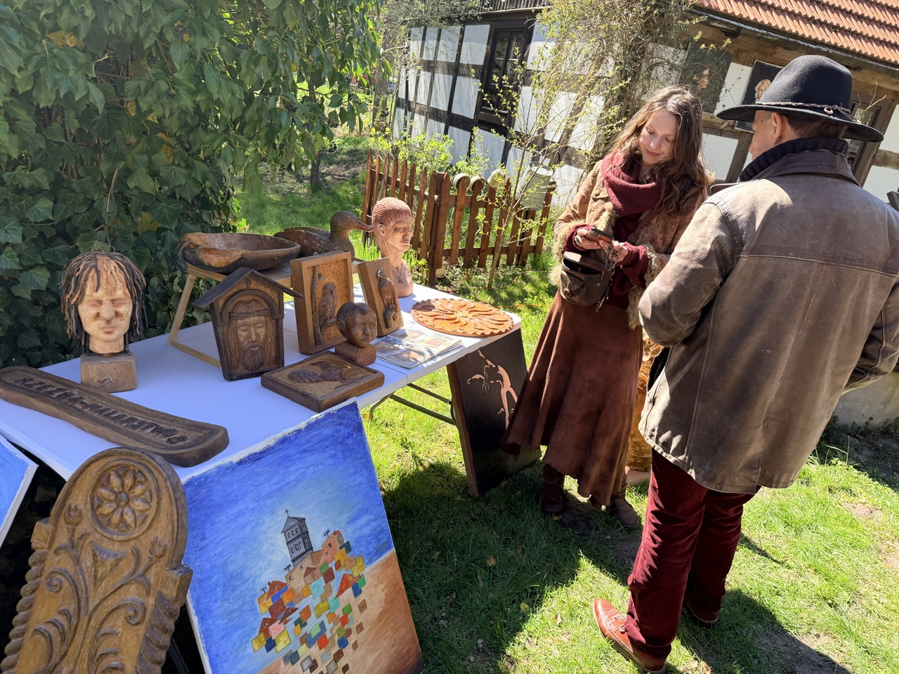 Na odwiedzających czekała także bogata strefa rękodzieła. Swoje prace prezentowali lokalni twórcy, którzy z pasją tworzą z naturalnych materiałów. Biżuteria Agi Chmielewskiej, makramy Joli Surmy, rzeźby Eligiusza Pawłowskiego czy tekstylne dzieła Doroty i Marii Ożgi przyciągały wzrok i zachęcały do rozmów z artystami. Nie zabrakło również tradycyjnych haftów Teresy i Gizeli Kruczyńskich oraz prac Krystyny Kosiby i Marianny Kubali.